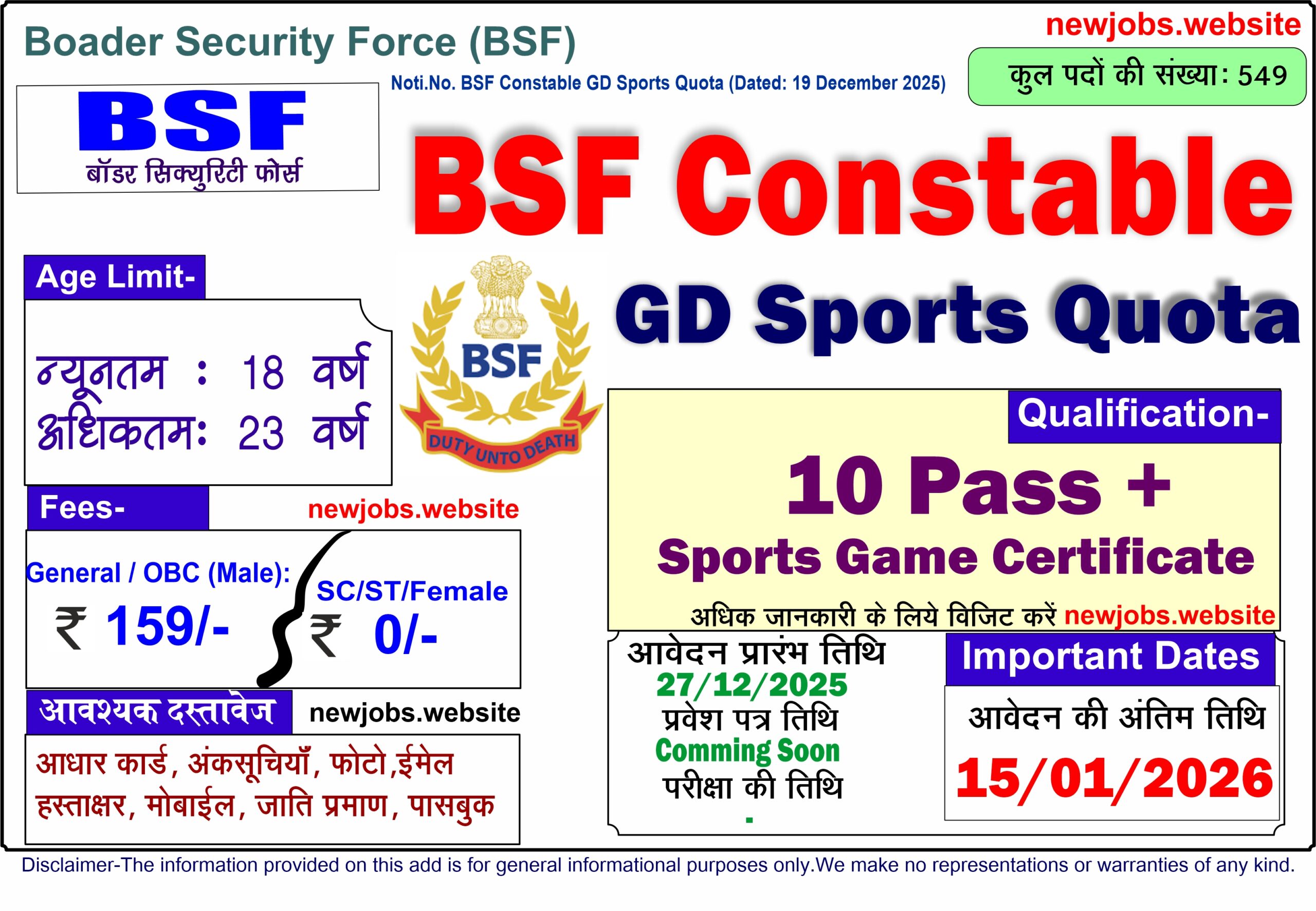 BSF Constable GD Sports Quota Recruitment 2025, Apply Online for...