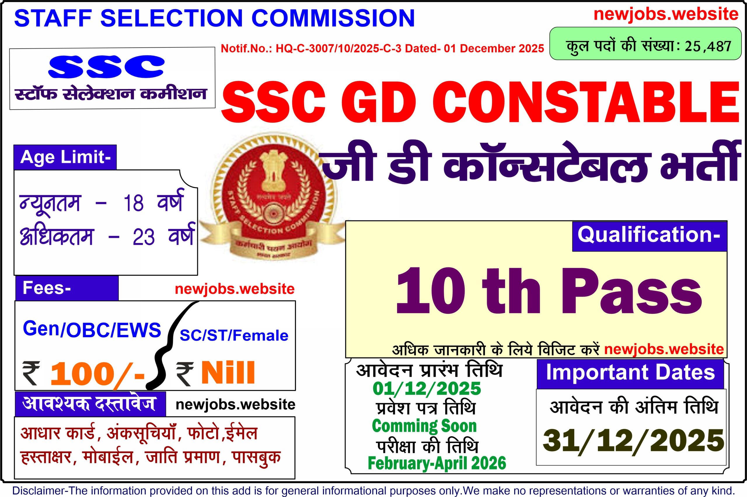 SSC GD Recruitment-2026 Apply Online for 25,487 Posts