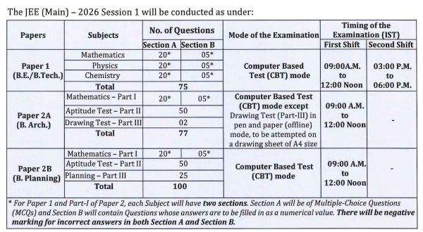 Entrance Exams JEE MAIN 2026 Session 1 Online Form By cscbarkuhi@gmail.com Published on: November 9, 2025 Join WhatsApp Join Now Join Telegram Join Now ---Advertisement--- Job DetailsInviting Online Application Form for Joint Entrance Examination (Main) - 2026 Session 1- Reg.Job PostJoint Entrance ExaminationQualification12th Pass/RunningExam Date21 Jan, 2026Last Apply Date27 Nov, 2025Apply Now संयुक्त प्रवेश परीक्षा (मुख्य) Joint Entrance Examination (Main) JEE(Main) Jee mains 2026 Session 1